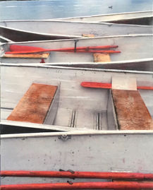 Encaustic can be combined with a diverse array be of media - oil paint, paper, photographs, pastel, rust, shellac, and more. The effects are endless. From simple lanscape to exotic and mysterial. To clean vs weathered, smooth vs scraped, simple vs chaotic, man made vs organic. Learning the craft of encaustic by using this diverse array of medium is a path to finding my creative voice.